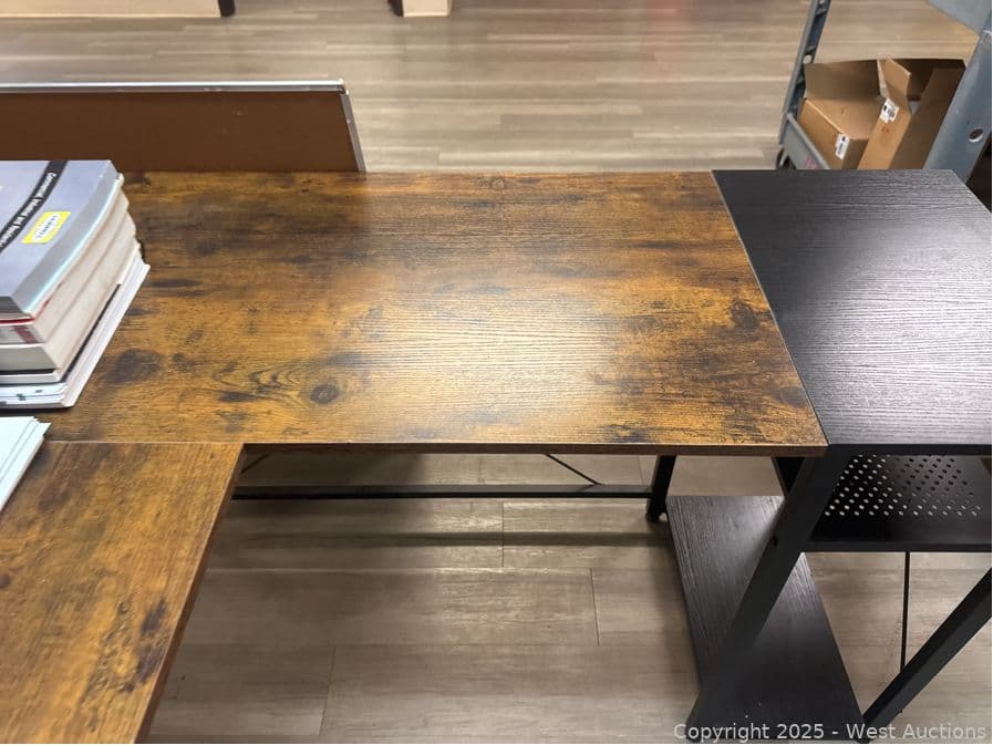 L-Shaped Desk And Contents: Whiteboard, Electricians Textbooks | West Auctions