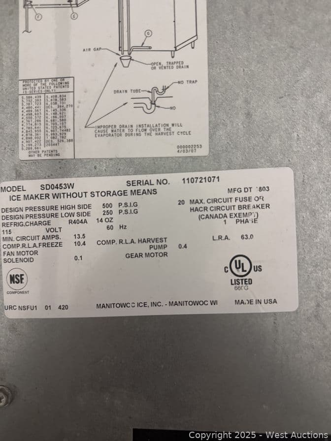 Manitowoc 450lb Ice Maker (Water Cooled) | West Auctions