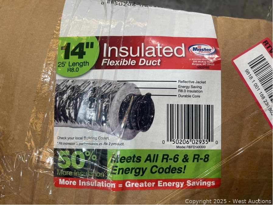 Master Flow 14 in. x 25 ft. Insulated Flexible Duct R8 Silver Jacket- $169 Retail Price | West Auctions