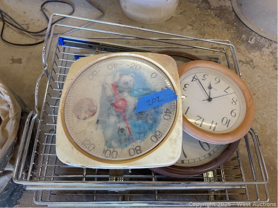 Metal Shelving And (3) Clocks | West Auctions