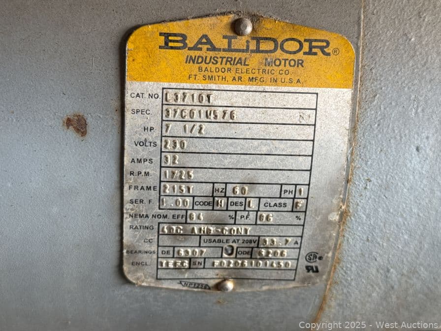 Motorized Hydraulic Pump With Baldor 7.5 HP Motor | West Auctions