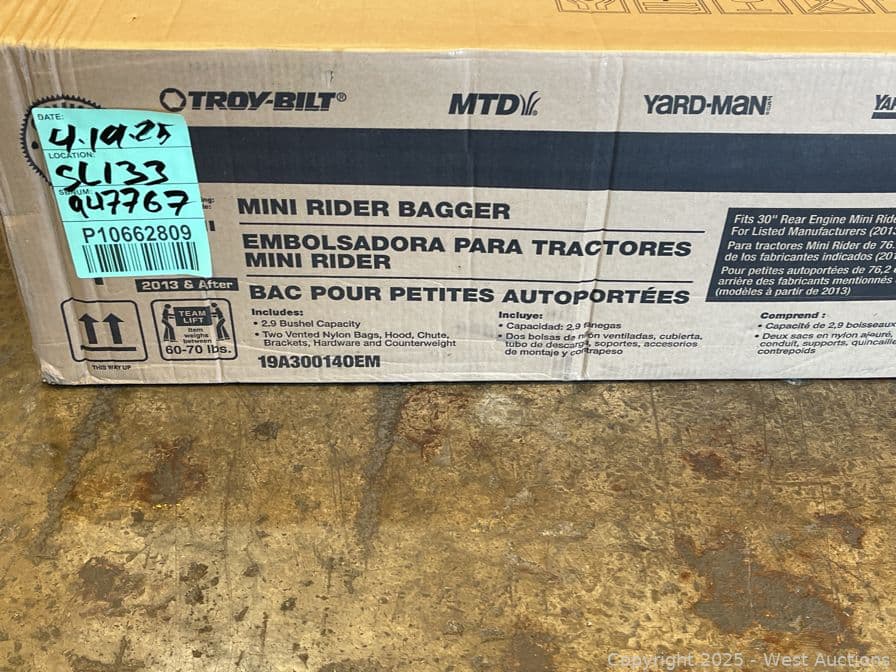 MTD Genuine Factory Parts Original Equipment 30 in. Double Bagger for Cub Cadet, Troy-Bilt and Craftsman Rear Engine Lawn Mowers (2013 and After) - $374 Retail Price | West Auctions
