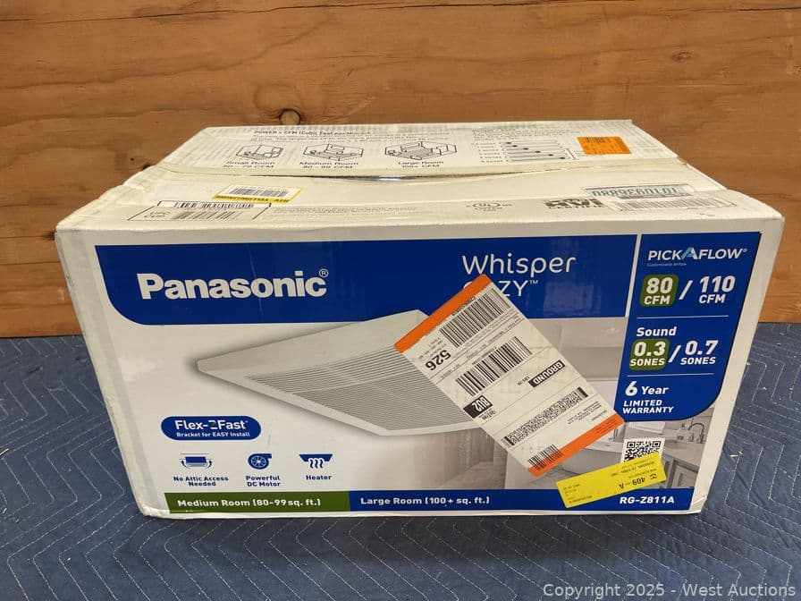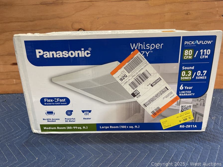 Panasonic Whisper Cozy DC 80/110 CFM Pick-A-Flow Ceiling Bathroom Exhaust Fan/Heater with Flex-Z-Fast Easy Install Bracket -$279 Retail Price | West Auctions