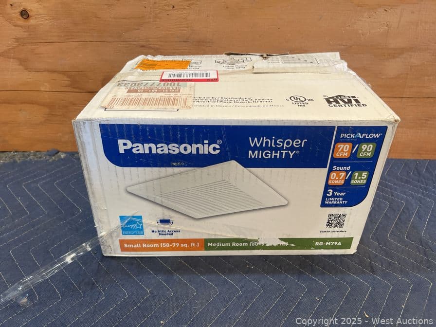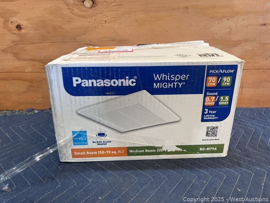 Panasonic Whisper Mighty Pick-A-Flow 70/90 CFM Ceiling/Wall Bathroom Exhaust Fan, Energy Star with 9 in. x 9 in. Grille Footprint- $97 Retail Price | West Auctions
