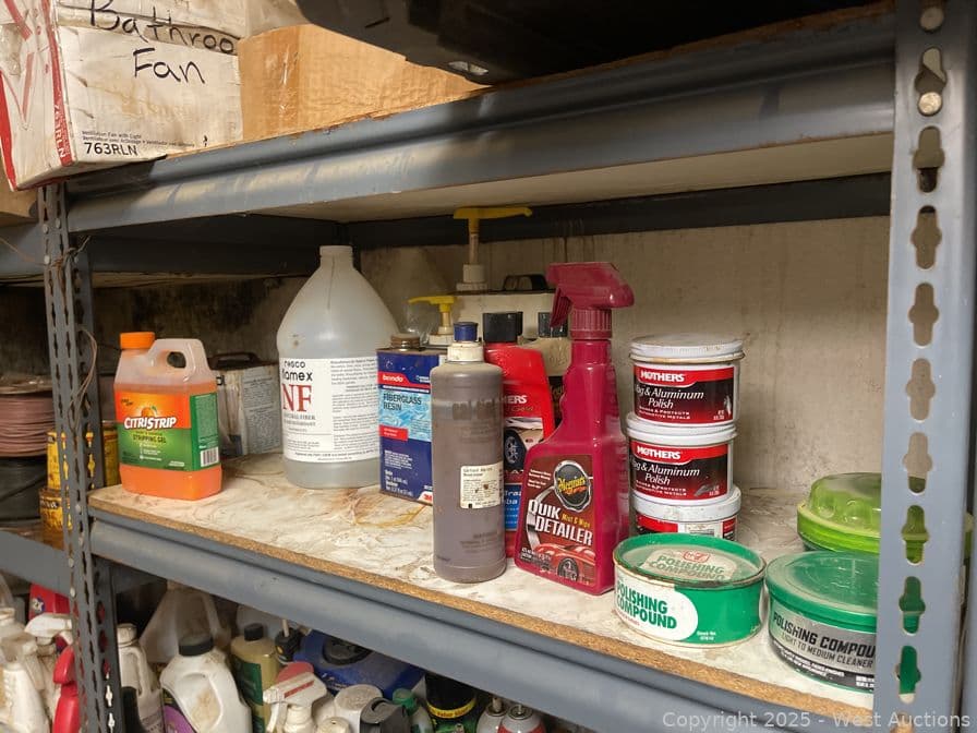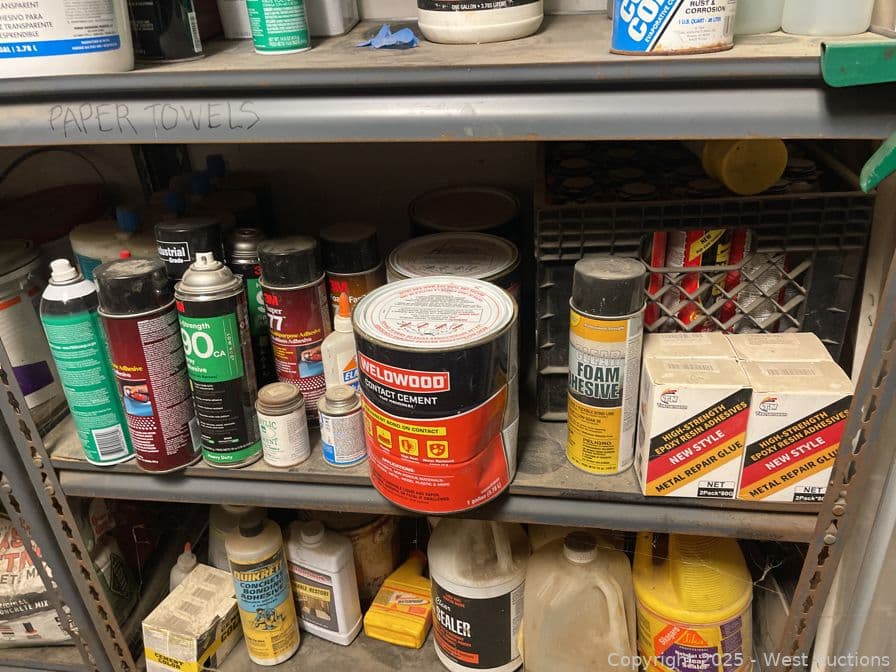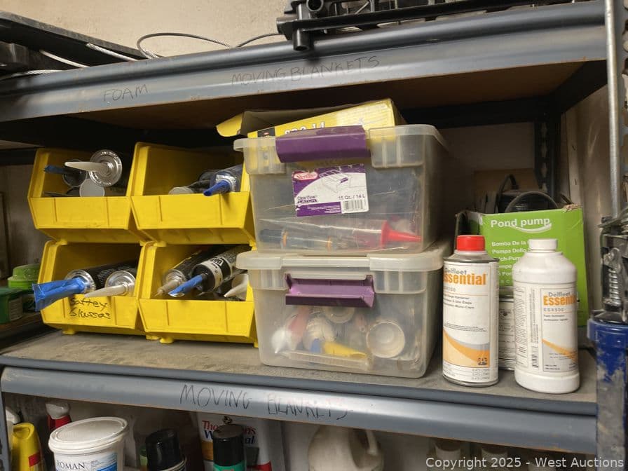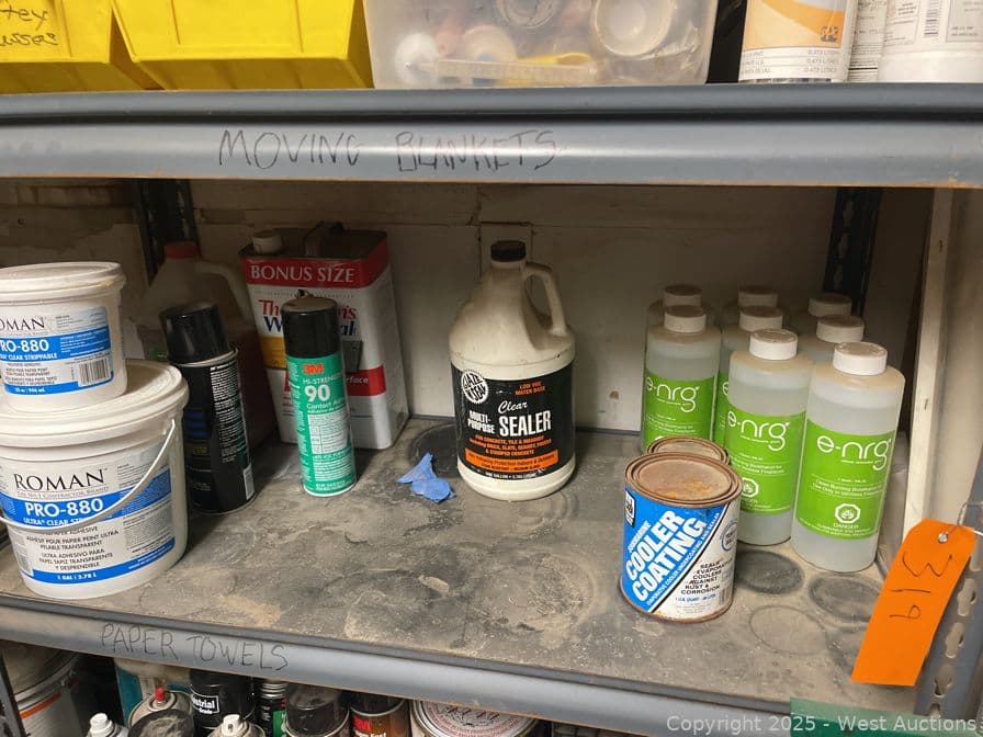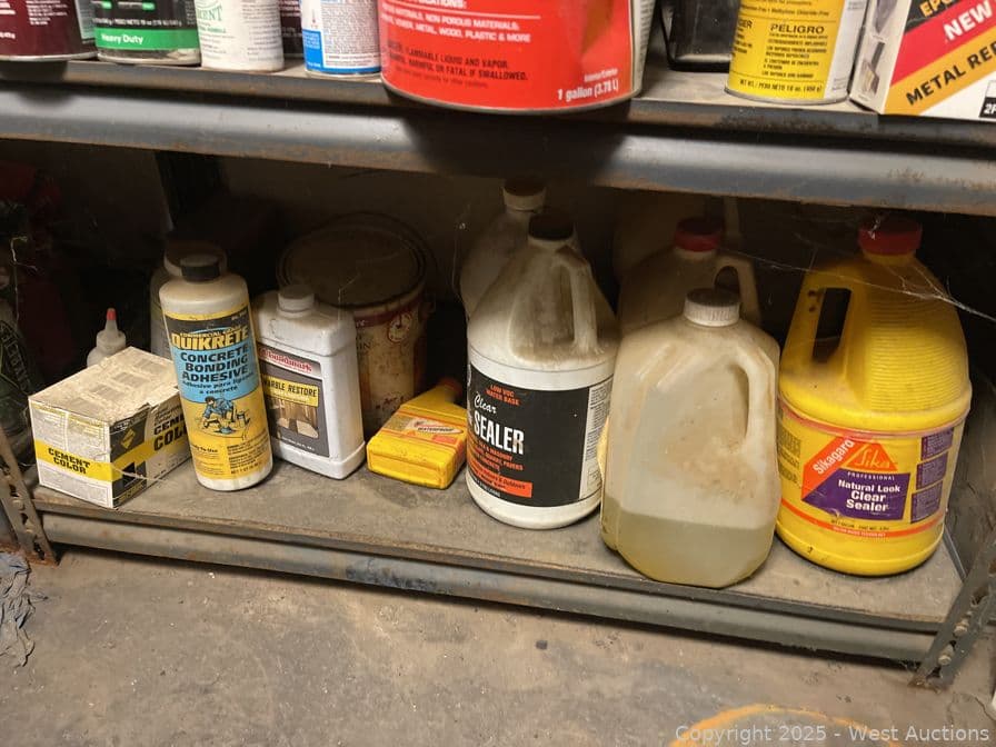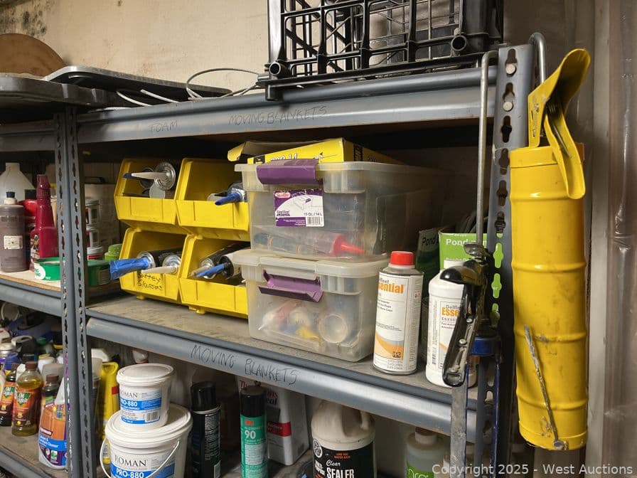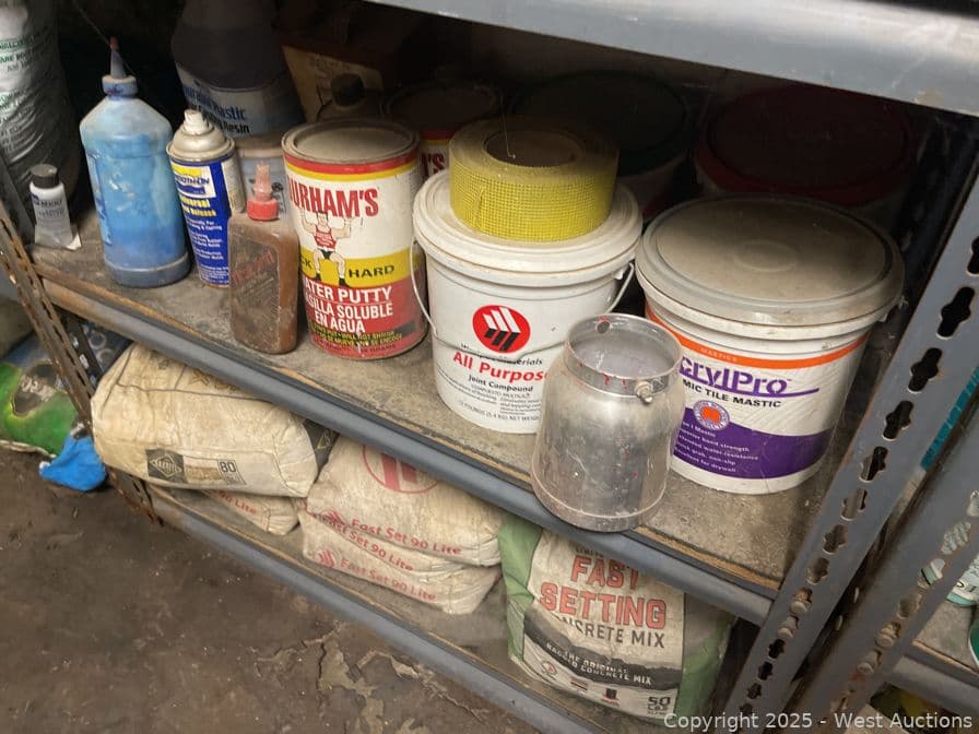Racking With Assorted Contents, Paint, Cleaner, Caulking And More | West Auctions
