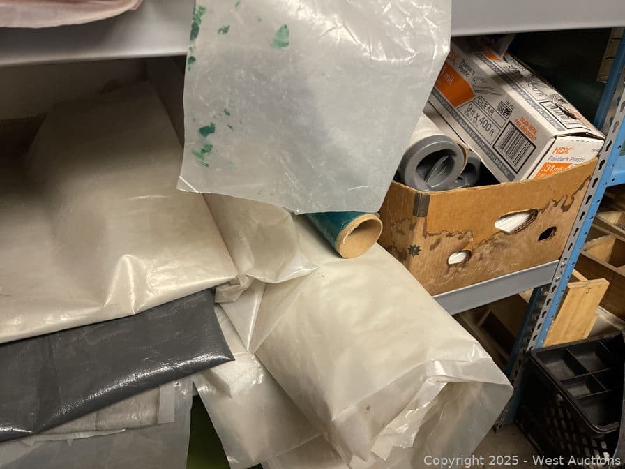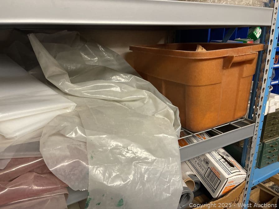 Racking With Assorted Contents, Plastic Sheeting, Fabrics, Bins And More | West Auctions