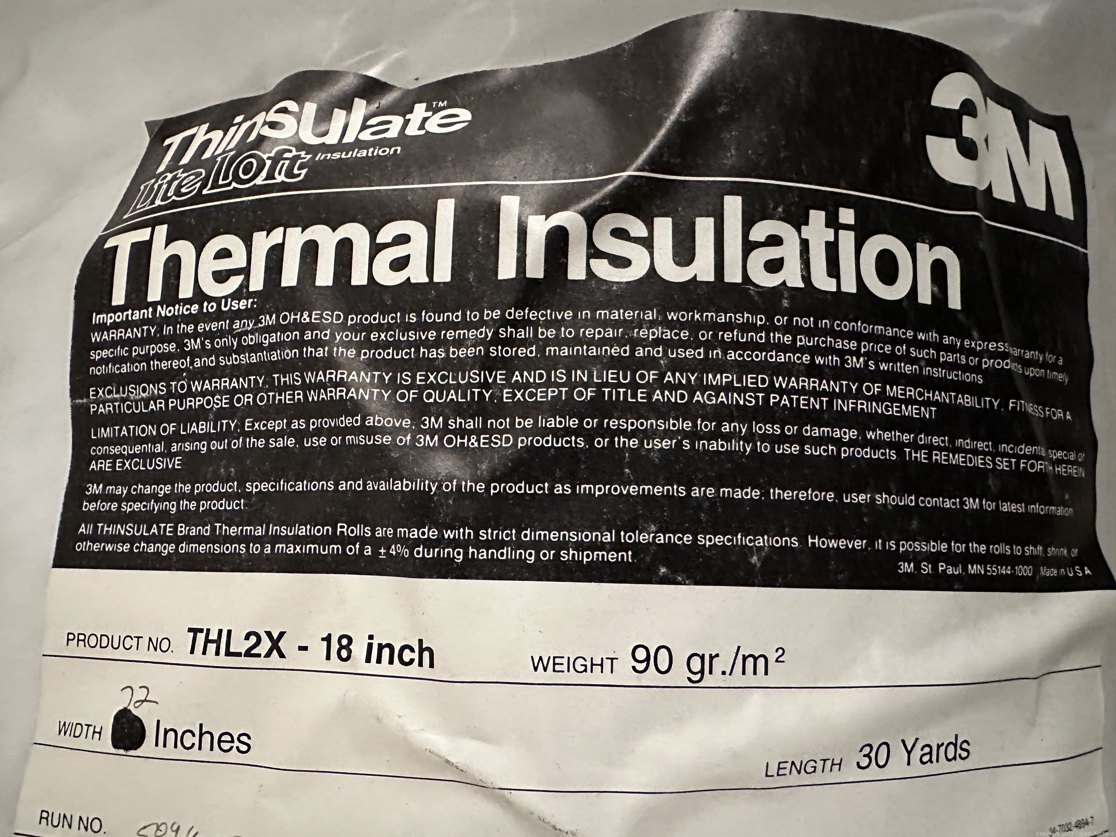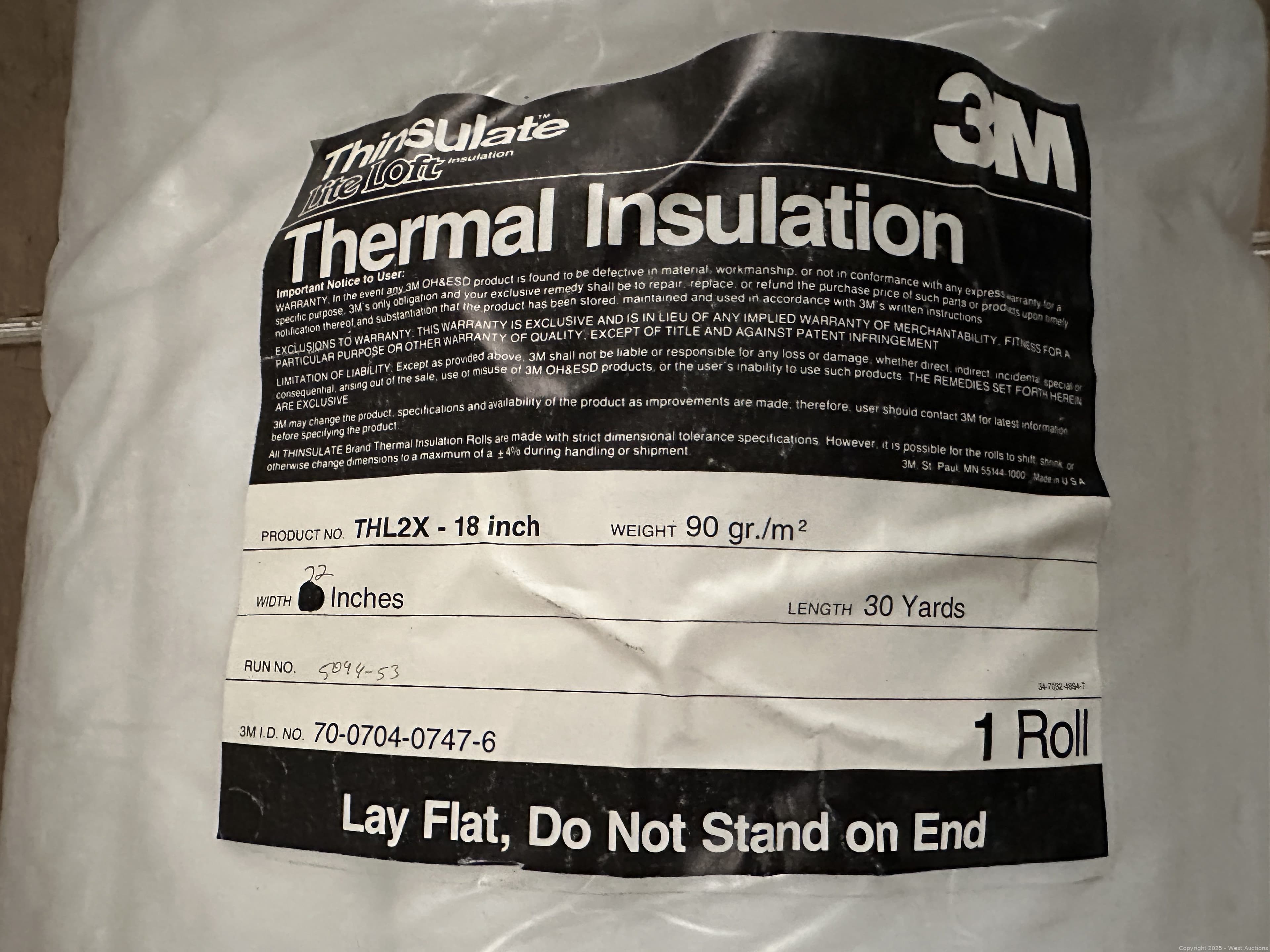 Roll Of 3M Thinsulate Lite Loft Thermal Insulation | West Auctions