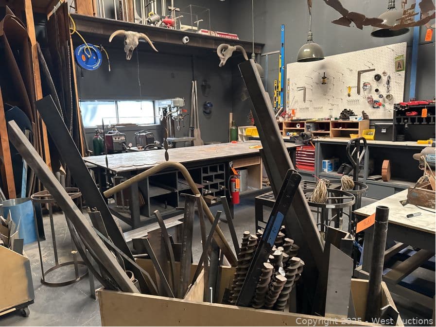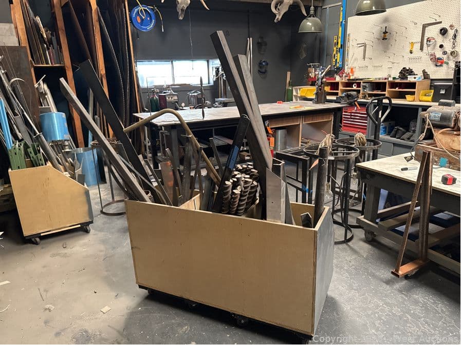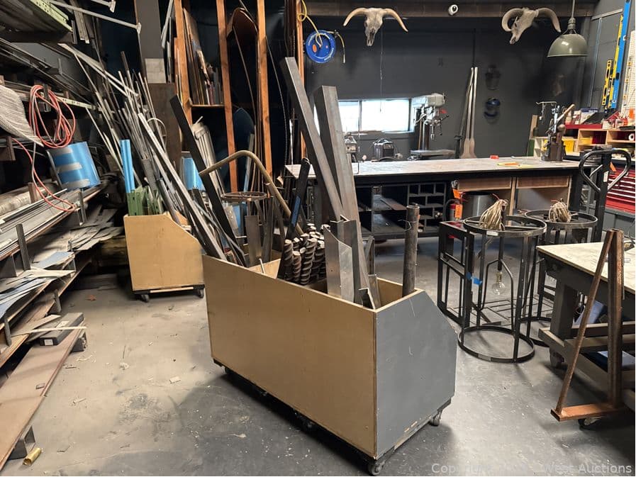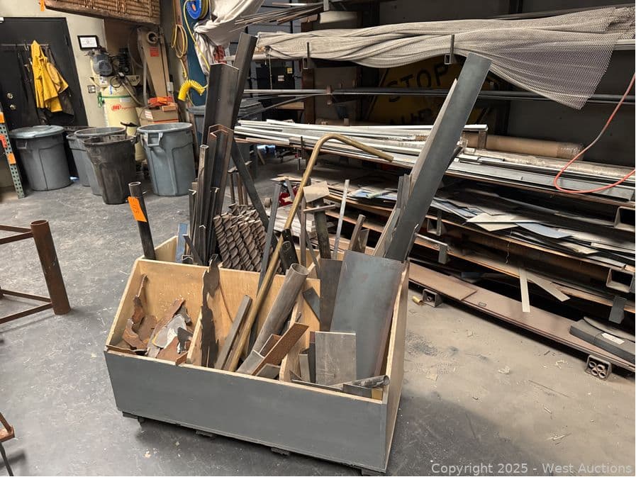 Rolling Handmade Bin With Assorted Steel and More | West Auctions
