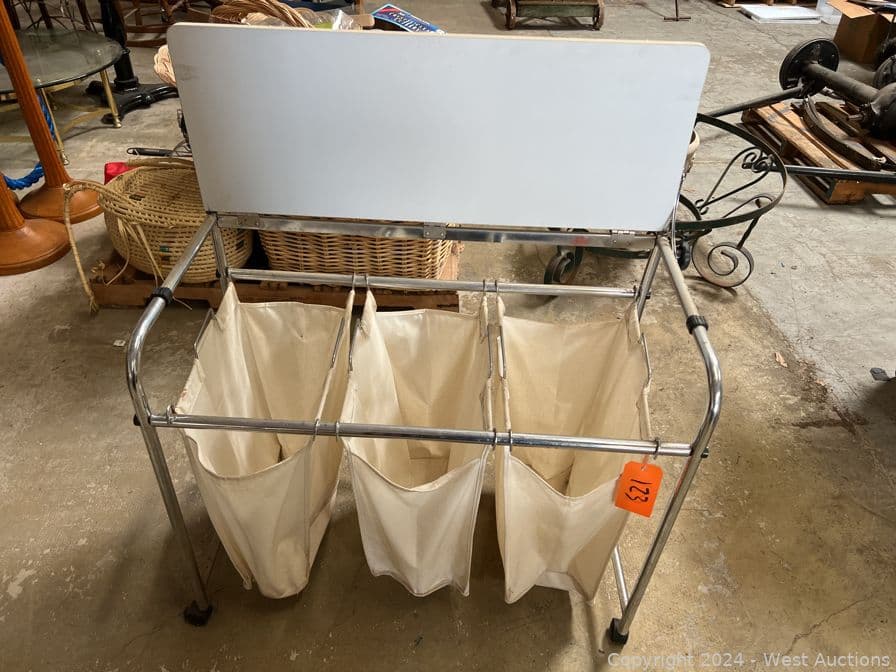 Rolling Metal Laundry Cart | West Auctions