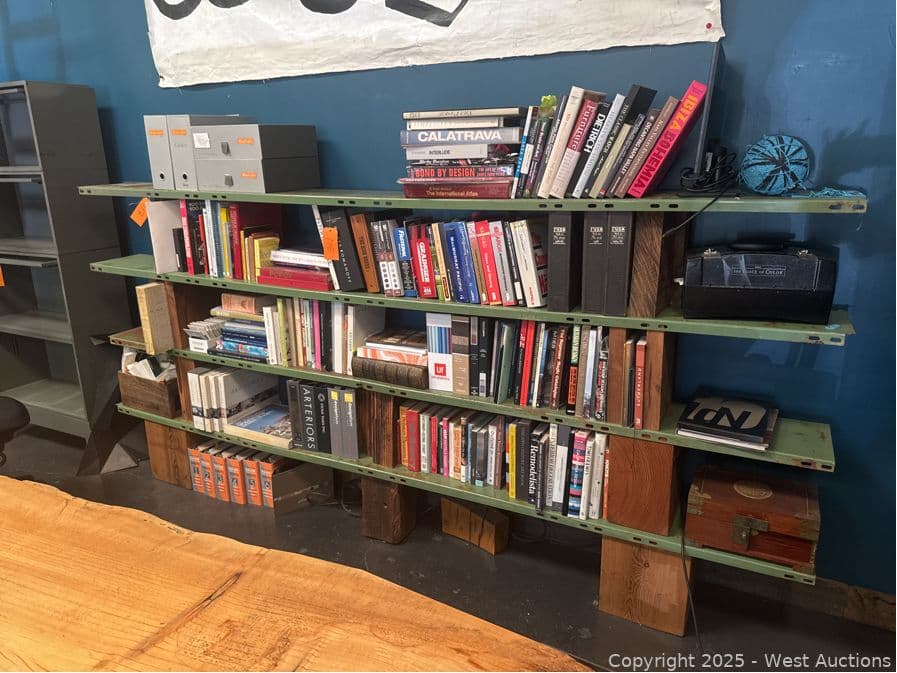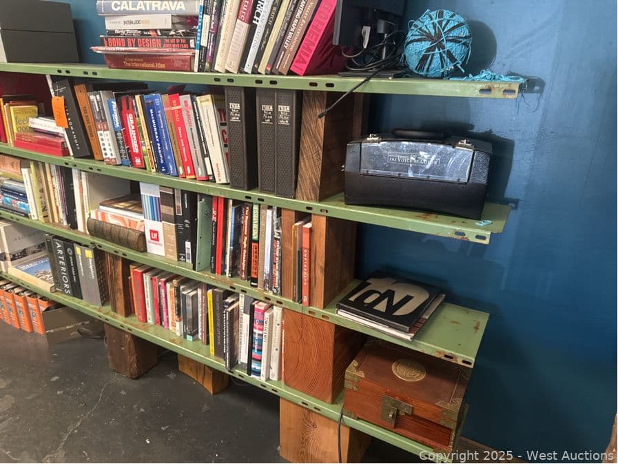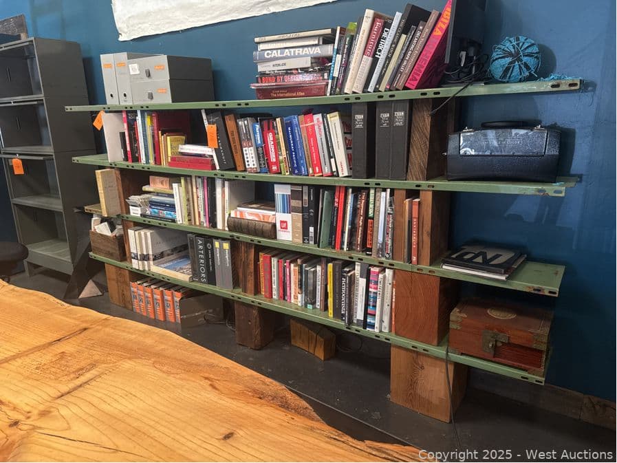 Steel Bookshelf With Wood Blocks (Books Not Included) | West Auctions