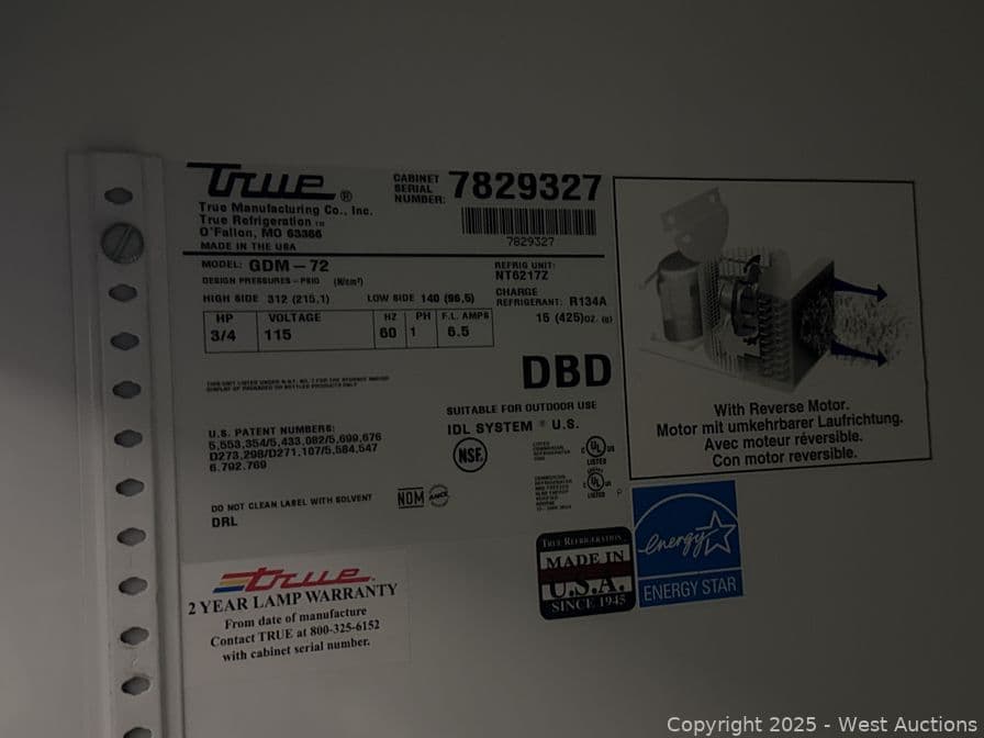 True 3 Door Commercial Refrigerator GDM72 | West Auctions