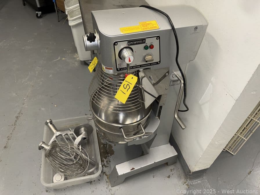 Uniworld HLM -30B Single Phase 110v Commercial Bakers Mixer With Attachments | West Auctions