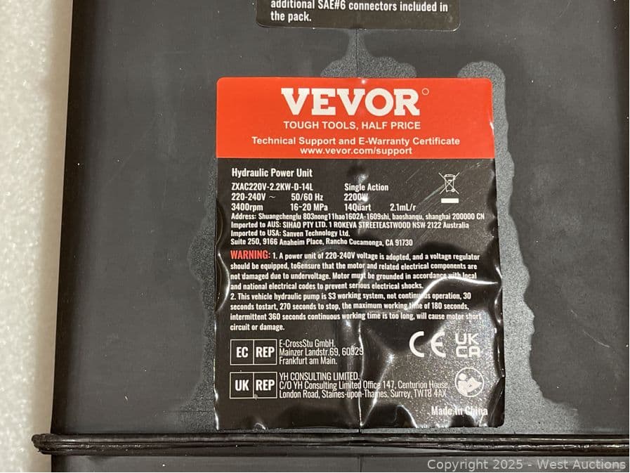 Vevor 220-Volt 3.5 Gal. Hydraulic Pump 2950 PSI 60HZ Hydraulic Power Unit 3 HP Hydraulic Power Pack with Reservoir- $281 Retail Price | West Auctions