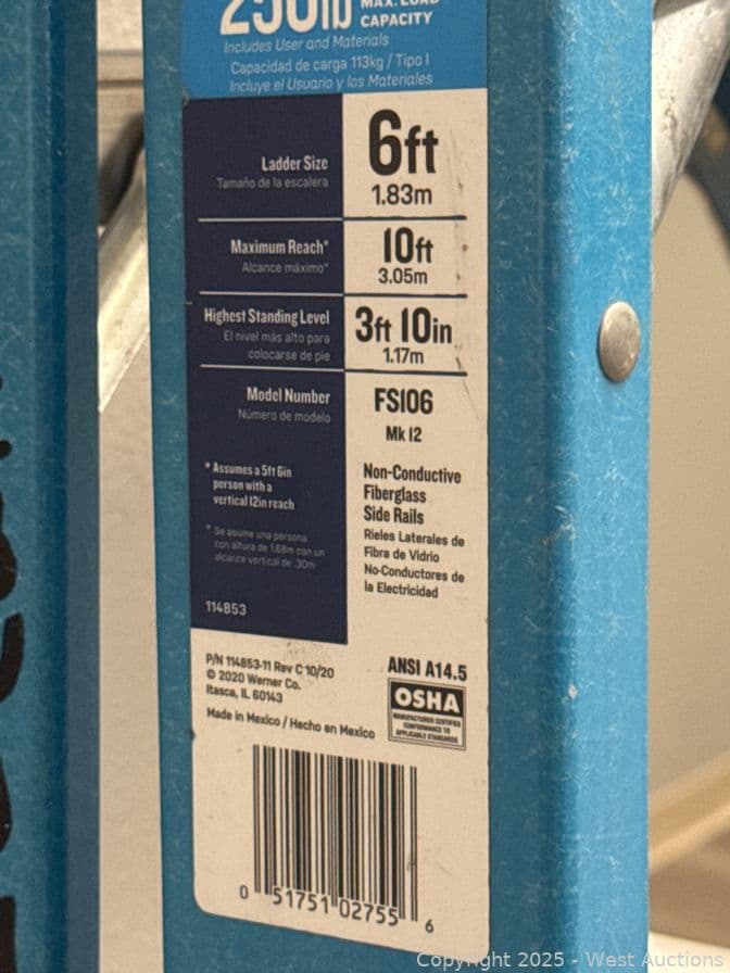 Werner 6’ Fiberglass Ladder | West Auctions